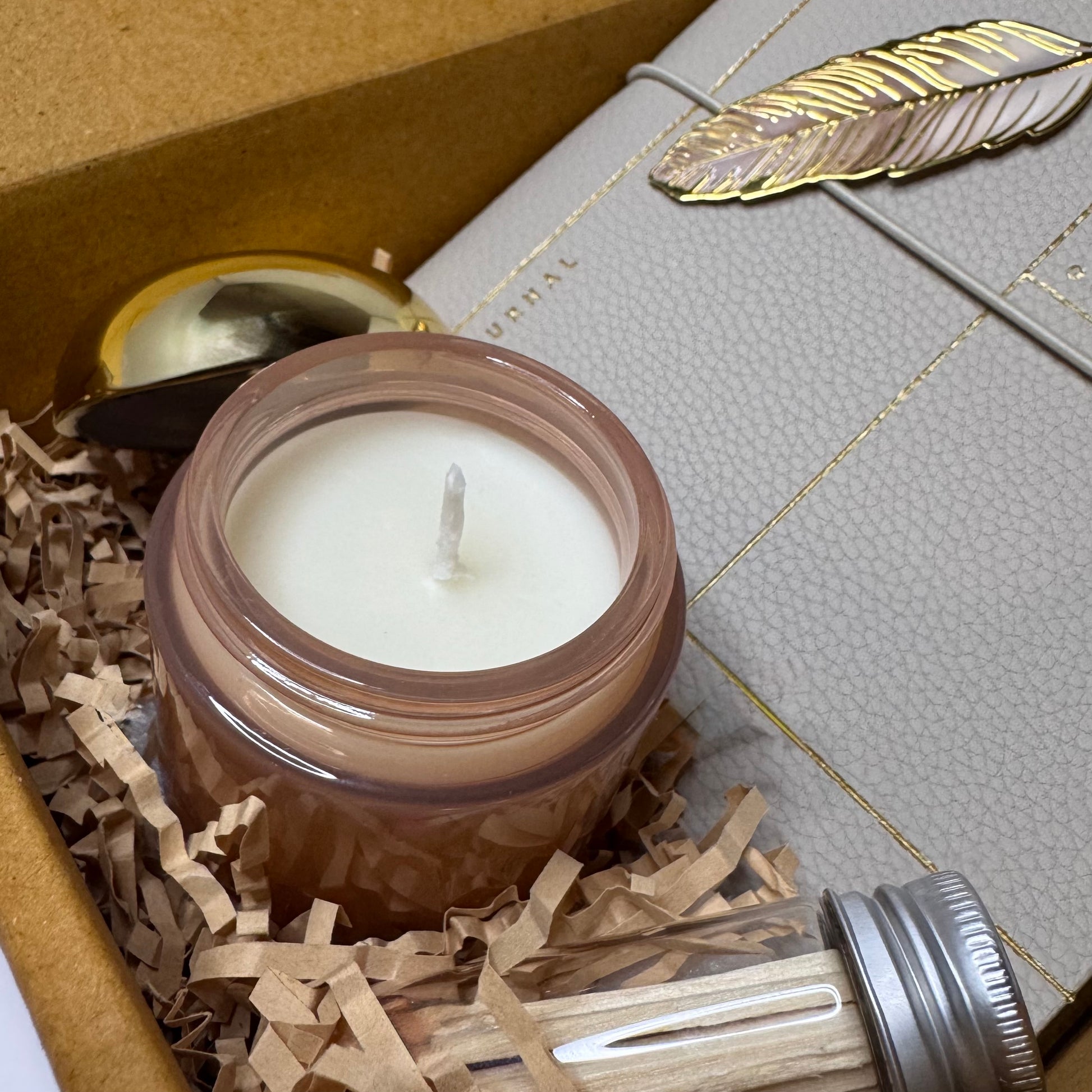 Use it in quiet moments. Light the candle. Open the journal. Mark a page with the feather bookmark. Write one thing you’re thankful for. No rules. No pressure. Just a short pause.